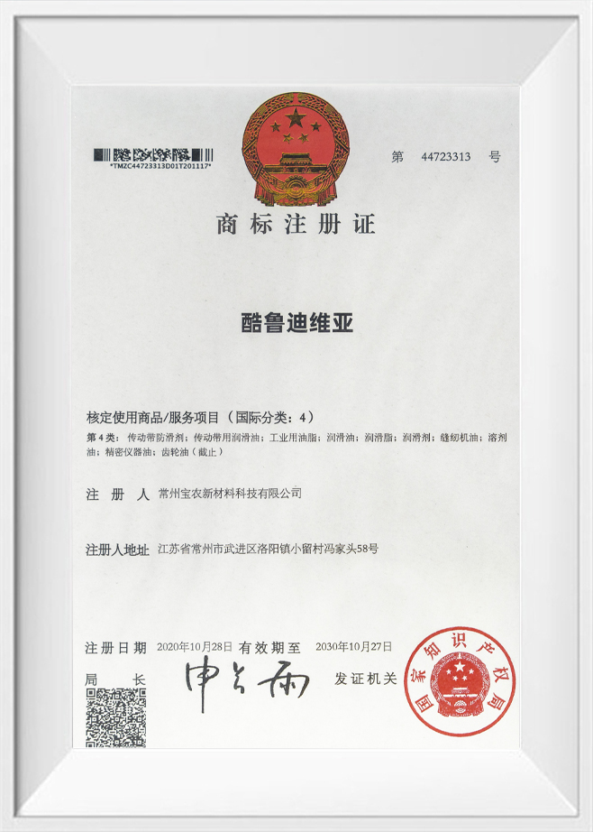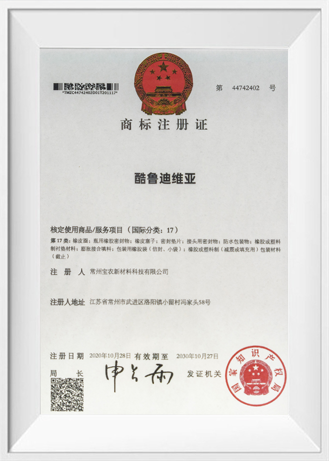 Certificat d'enregistrement de marque