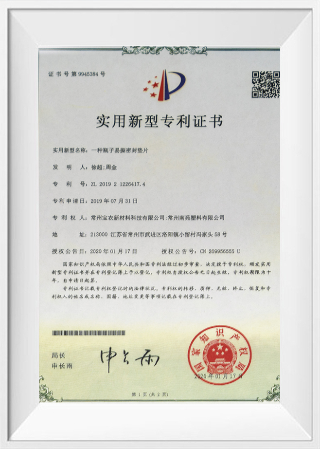 Certificat de brevet de modèle d'utilité